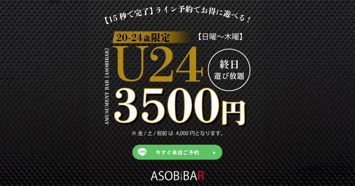 ASOBIBARで非日常の体験を是非お楽しみ下さい。